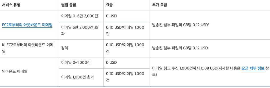 - 요금 부과 기준 : 보낸 이메일 수, 이메일의 크기, 수신자 수 등에 따라 청구